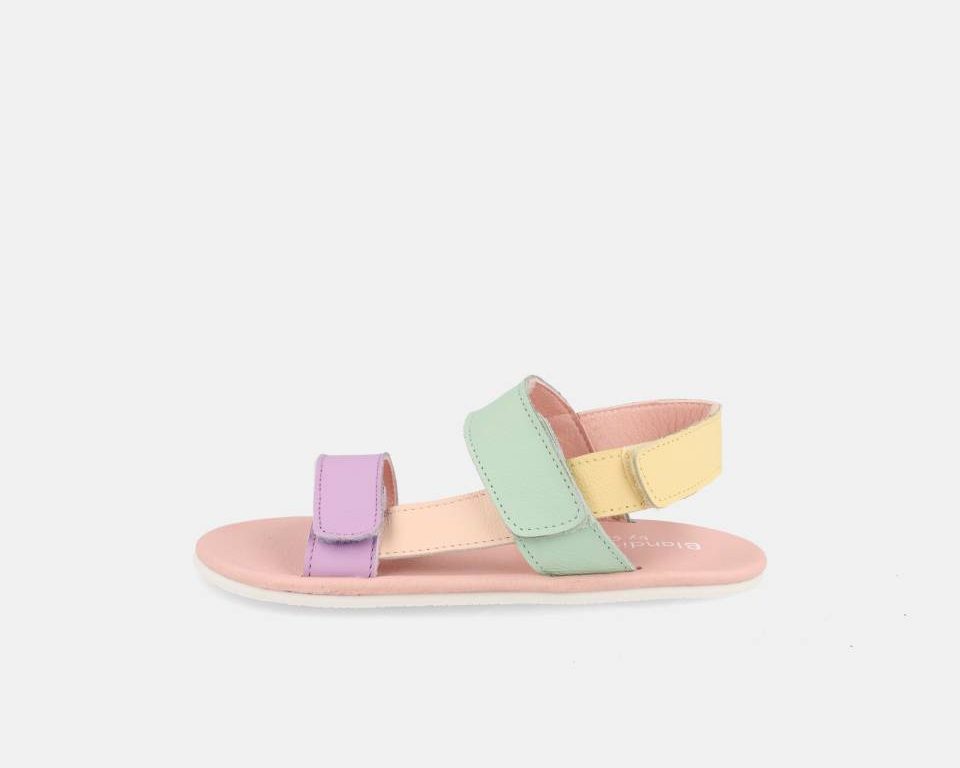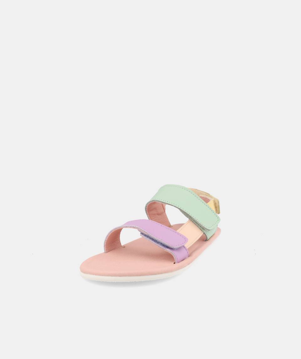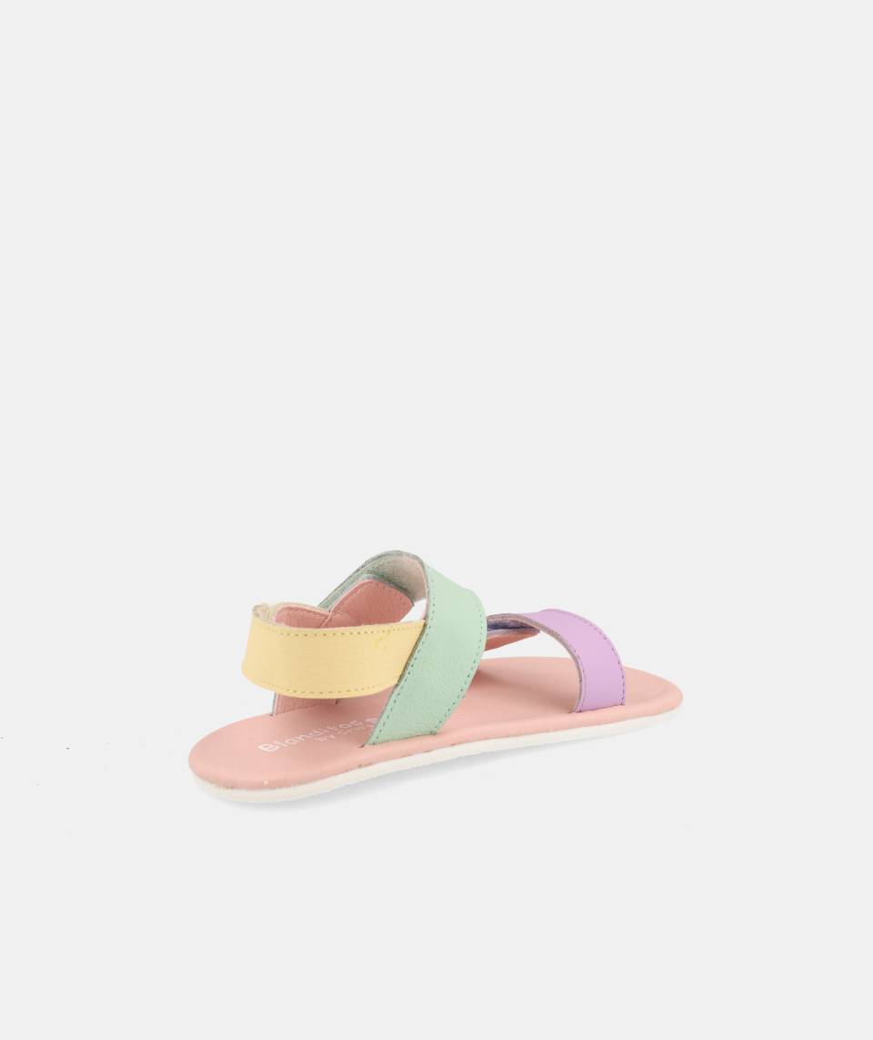 Sandalia hecha con piel en tonos pastel de la gama Blanditos by Crio´s con ajuste de velro en 3 puntos: Parte de los dedos, al empeine y en el talón.