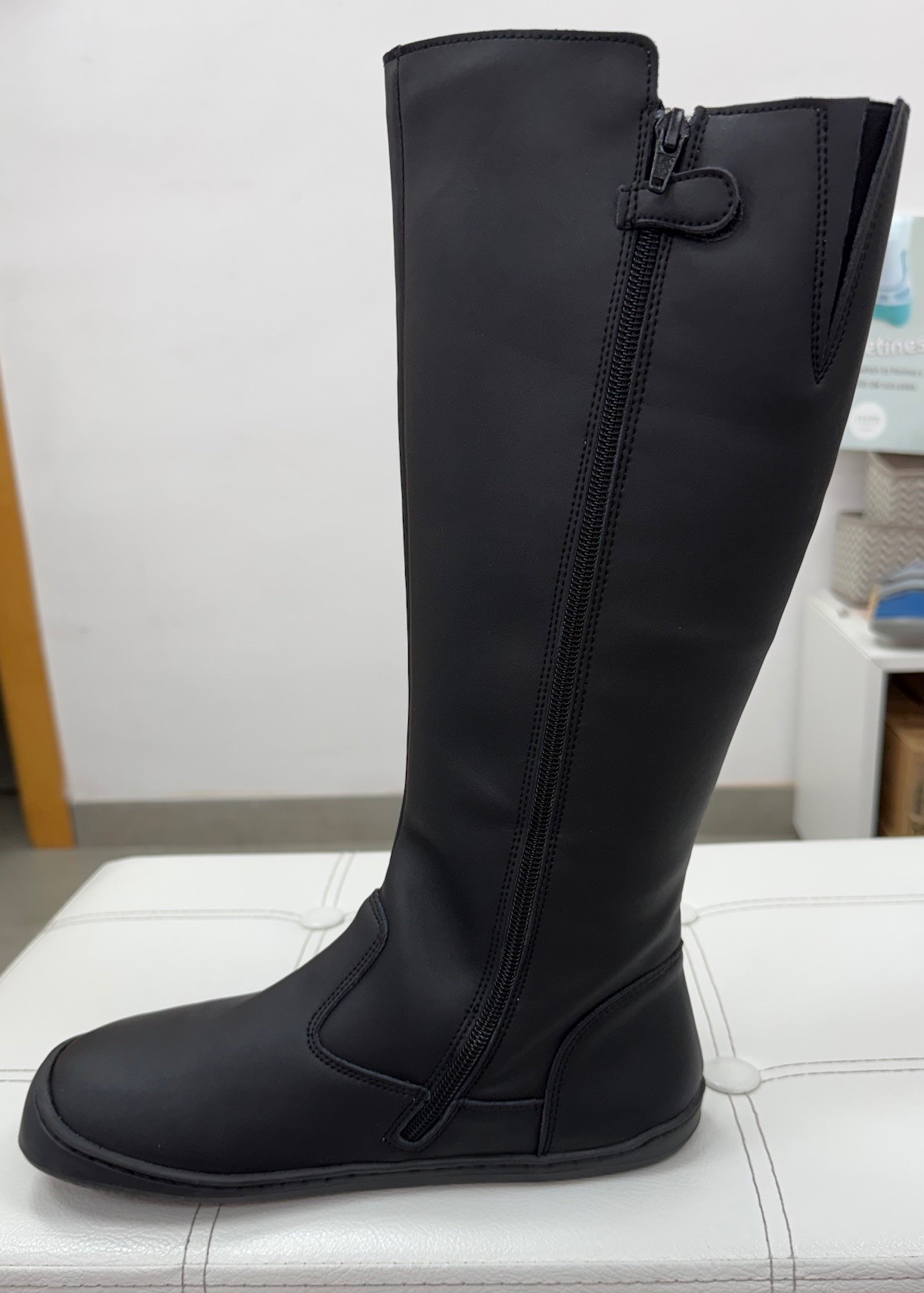 La altura del zapato es igual desde la puntera al talón. Esto favorece una pisada natural y una mejor alineación de la espalda.