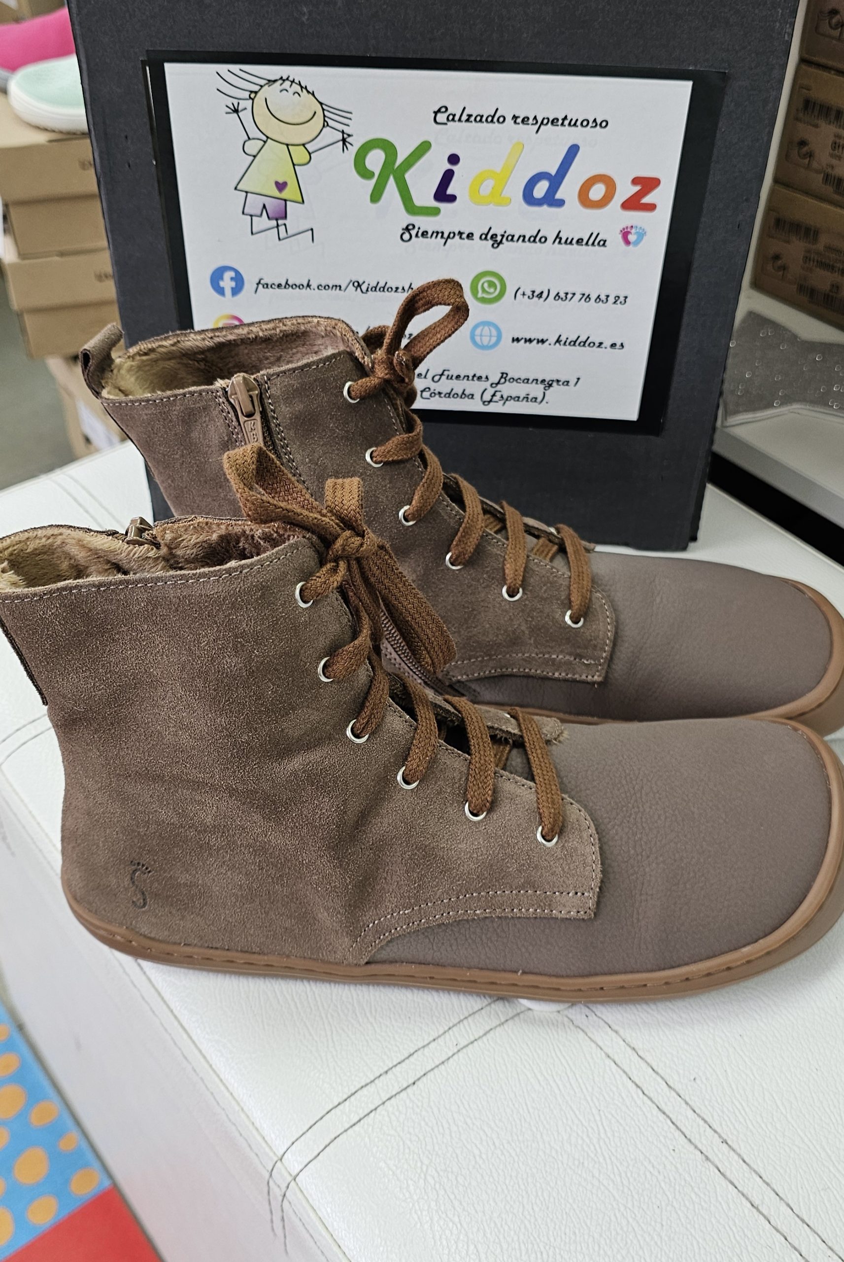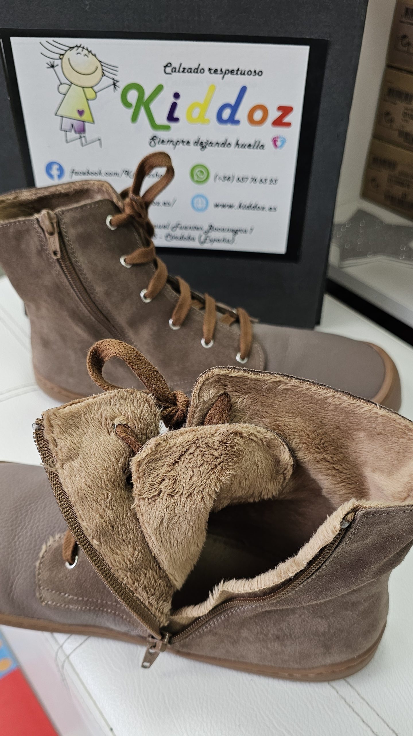 Con cordones y cremallera en en lado interior.