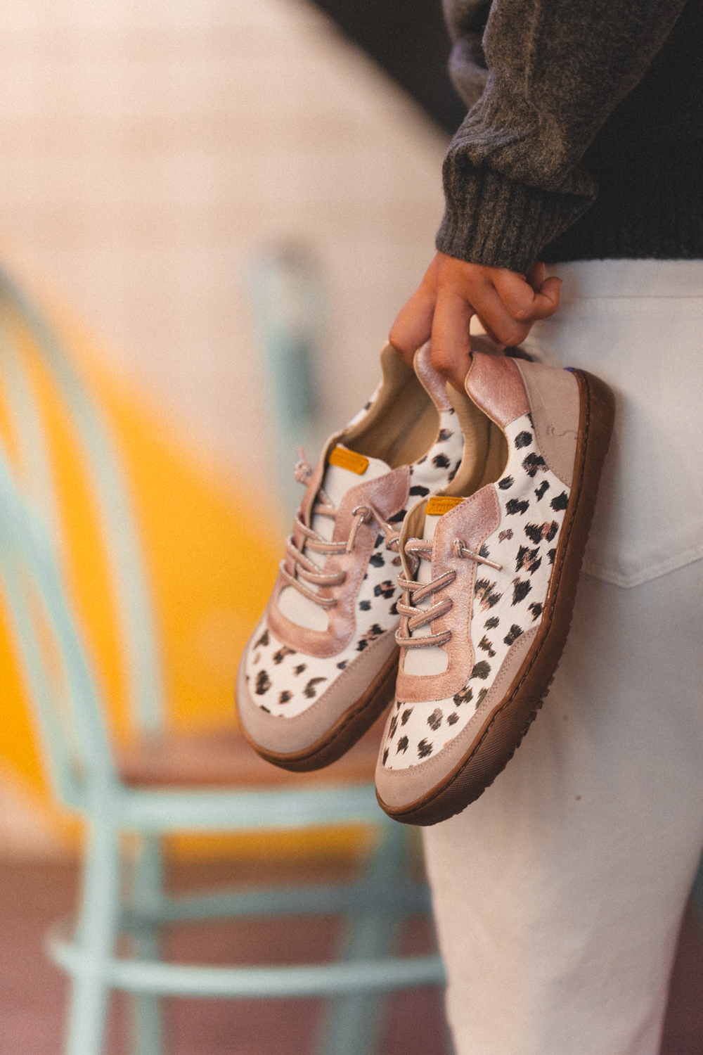 Zapato hecho en piel con detalles de piel serraje y estampado animal print.