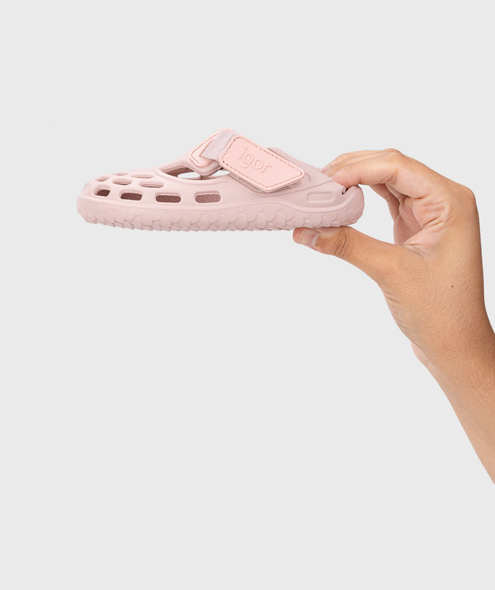 Zapatilla de agua monocolor de E.V.A. súper ligera diseñada en concepto barefoot medium, cero drop, flexible, blandita, y con cierre adherente.