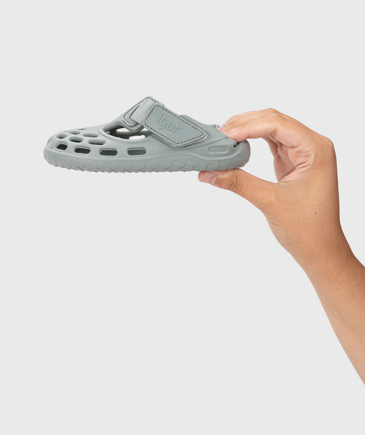 Zapatilla de agua monocolor de E.V.A. súper ligera diseñada en concepto barefoot medium, cero drop, flexible, blandita, y con cierre adherente.