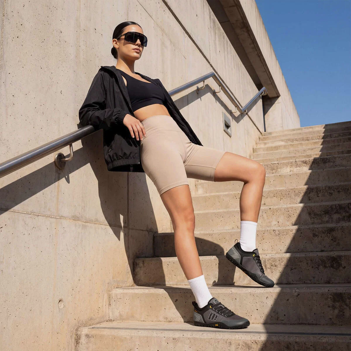 Deportivas barefoot lavables de color negro y gris de la marca Mustang, modelo Free Vibram de estilo trekking. Su parte superior combina malla y refuerzos en zonas clave para un mejor ajuste y durabilidad. Incorporan suela Vibram, pensada para el multideporte y actividades al aire libre, destacando por su excelente tracción en mojado, flexibilidad y capacidad de respuesta en terrenos irregulares. Diseñadas y desarrolladas especialmente en colaboración con el Dr. Juanjo López, traumatólogo deportivo, para respetar el desarrollo natural del pie. Se trata de un calzado minimalista que gracias a su puntera ancha, suela totalmente plana (cero drop) y flexibilidad, mejora la anatomía del pie y favorece una mejor posición del mismo. Con certificado VEGANO sellado por PETA, el cual garantiza que la naturaleza química principal del material no se corresponde con fibras de origen animal.