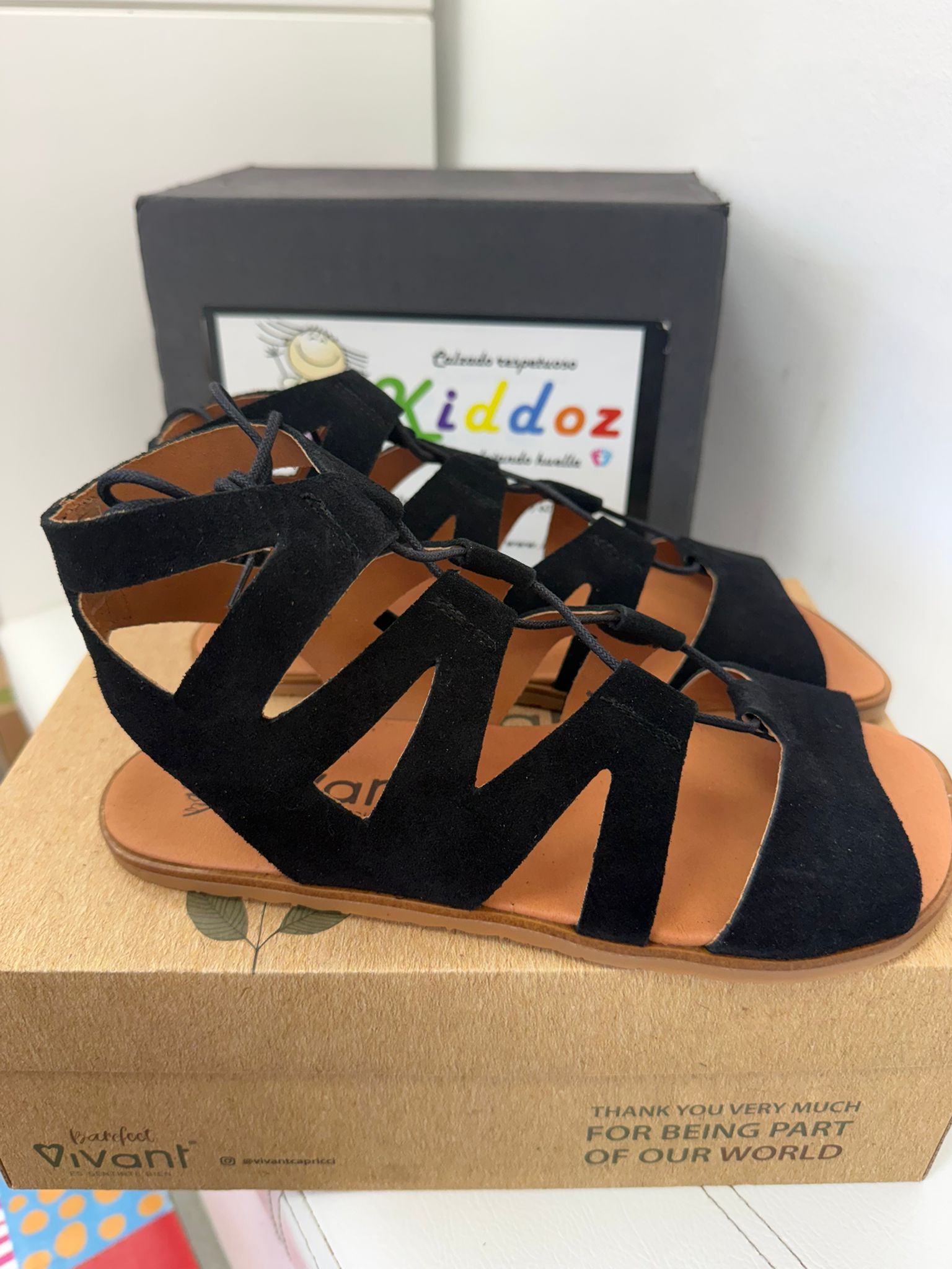 Fabricada artesanalmente en España, en piel serraje color negro, esta sandalia barefoot combina elegancia y confort. Su suela plana, flexible y sin drop, típica del calzado respetuoso, favorece una pisada más natural, ligera y alineada con tu cuerpo, pero perfecta para hacer transición con sus 12mm de grosor.